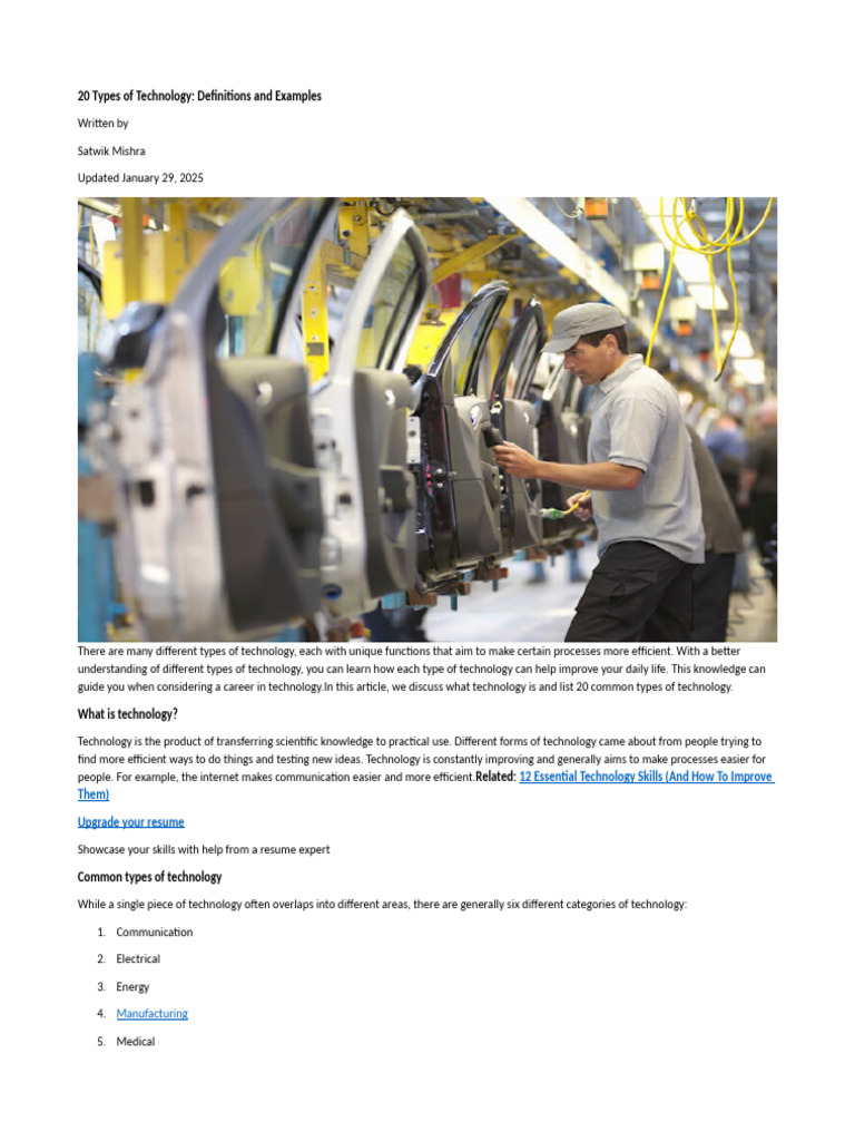 guide you when considering a career in technology.In this article, we discuss what technology is and list 20 common types of technology.