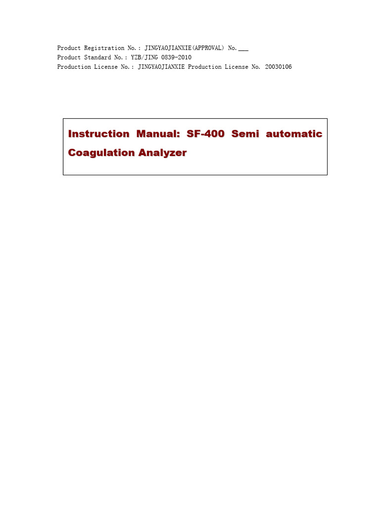 SF-400 semiautomatic Coagulation test instrument is an apparatus making use of 220V civil power