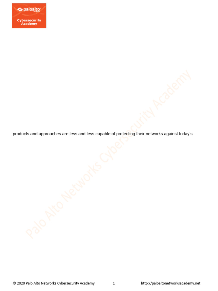 © 2020 Palo Alto Networks Cybersecurity Academy 1 http://paloaltonetworksacademy.net