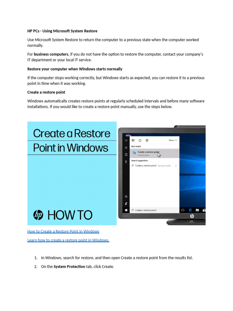 1. In Windows, search for restore, and then open Create a restore point from the results list.