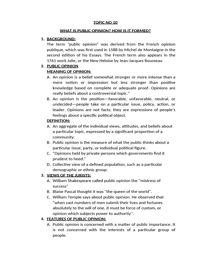WHAT IS PUBLIC OPINION? HOW IS IT FORMED?