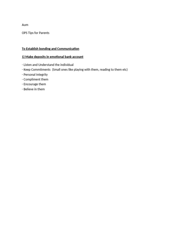 - Keep Commitments (Small ones like playing with them, reading to them etc)