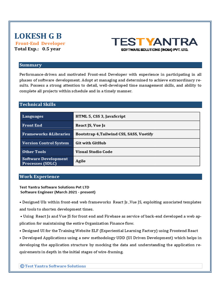 Total Exp.: 0.5 year