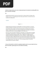 Companies are increasingly selling to, buying from, and competing with products from companies and individuals in other nations. International sales may provide additional profits, or even the major source of profits (Swiss pharmaceutical companies; Coca-Cola). Therefore, most companies must be interested in international marketing. The increased interest is partly the result of the growth of international markets. This growth is due to many factors including: lowering barriers to trade and investment; improvements in transportation, logistics, and communications; new products with international appeal; increased linking of companies, markets, and financing; and rapid expansion of world trade. It is also due to: productive capacity exceeding domestic demand in many industries; increasing foreign and domestic competition in many domestic markets; and the growth of overseas markets as standards of living increase in many nations. The interest will continue to increase as globalization progresses, world trade increases faster than world GDP, Foreign Direct Investment continues to increase, and the transportation, communication, cultural, and governmental barriers to trade are reduced. The growth in international trade and marketing has presented both new opportunities and new threats. Neither can be ignored safely. Students may come up with a number of additional reasons for the continuing increase in international marketing. These specific reasons may be drawn from the Sections The growing importance of international marketing and Reasons for the rapid growth in international business; elsewhere in the chapter; or knowledge from outside. 1.2 What is meant by internationalization and how does this relate to the global marketer? Internationalization is the process whereby a firm becomes increasingly committed to and involved in international business operations through specific products in specific markets. (Note: individual students may come up with somewhat different definitions based on other readings or interpretations.) The global marketer views major regions of the world as a simple or uniform market in which it markets a standardized product in a standardized way in order to achieve low relative costs. The traditional multinational company often adapts/individualizes products and practices to specific nations/regions to increase local acceptability but at an increased cost. 1.3 Is taking a global view limited to companies that view themselves as global companies? Explain. Taking a global view is not limited to companies that view themselves as global. The automotive division of Rolls Royce (before the sale to Volkswagen) might not have considered itself a global company since production, development of marketing policies, and administration were all concentrated in the UK. It could still have a global view, marketing the same product in the same way to the same market segment everywhere in the world (with only modular changes, such as right-hand or left-hand placement of steering wheels, to accommodate to local requirements). 1.4 Is it meaningful to attempt to measure the degree (or amount) of internationalization of a firm? Explain. It is useful for a firm to measure its degree (or amount) of internationalization as the first step in a gap analysis: assessing where the company is now with respect to international sales; how international the company could be; and how international it wants to be. The resulting analysis will enable the company to identify actions and resources needed to move from where it is now to where it wants to be.