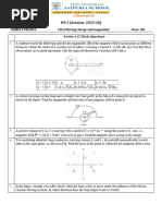 Exam–8 A solenoid of length 0.5 m has a radius of 1 cm and is made up of 500 turns. It carries a current