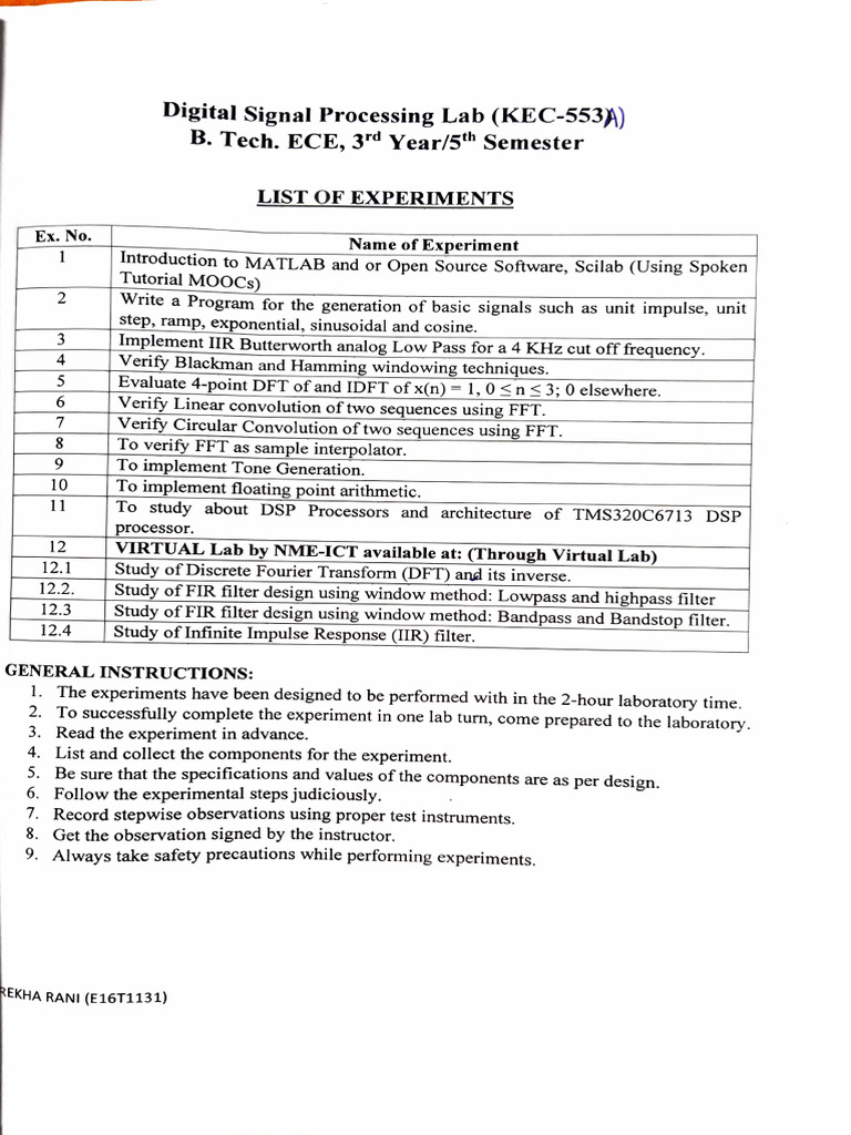 12.1 Study of Discrete Fourier Transform (DFT) and its inverse.