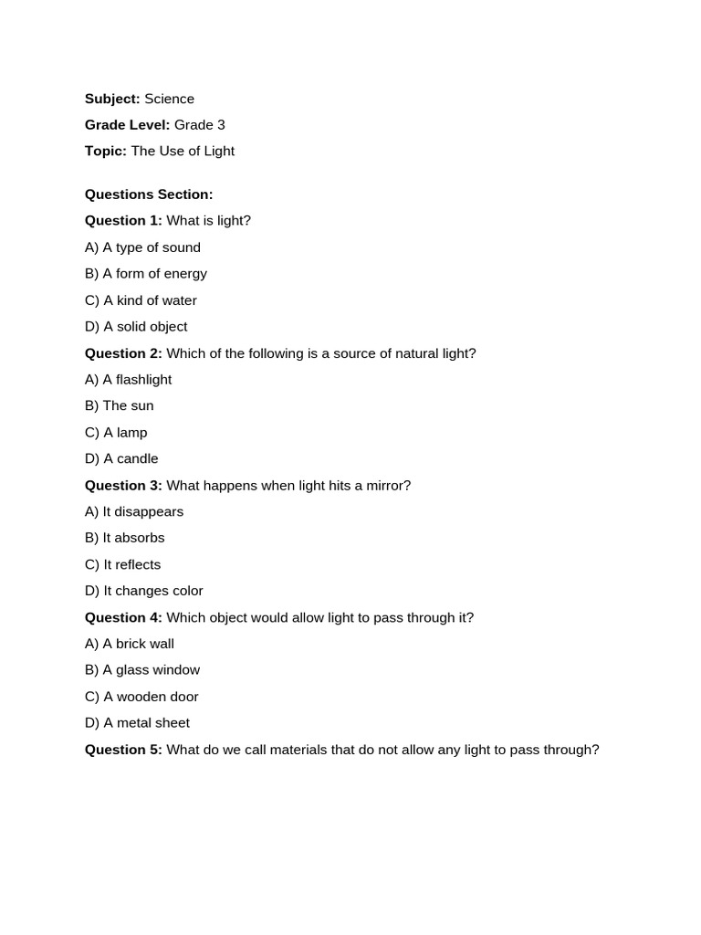 Rationale: Opaque materials block light completely. Learning objective
