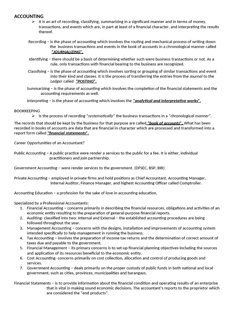 2. Auditing- classified into two: Internal and External – the established accounting procedures are being