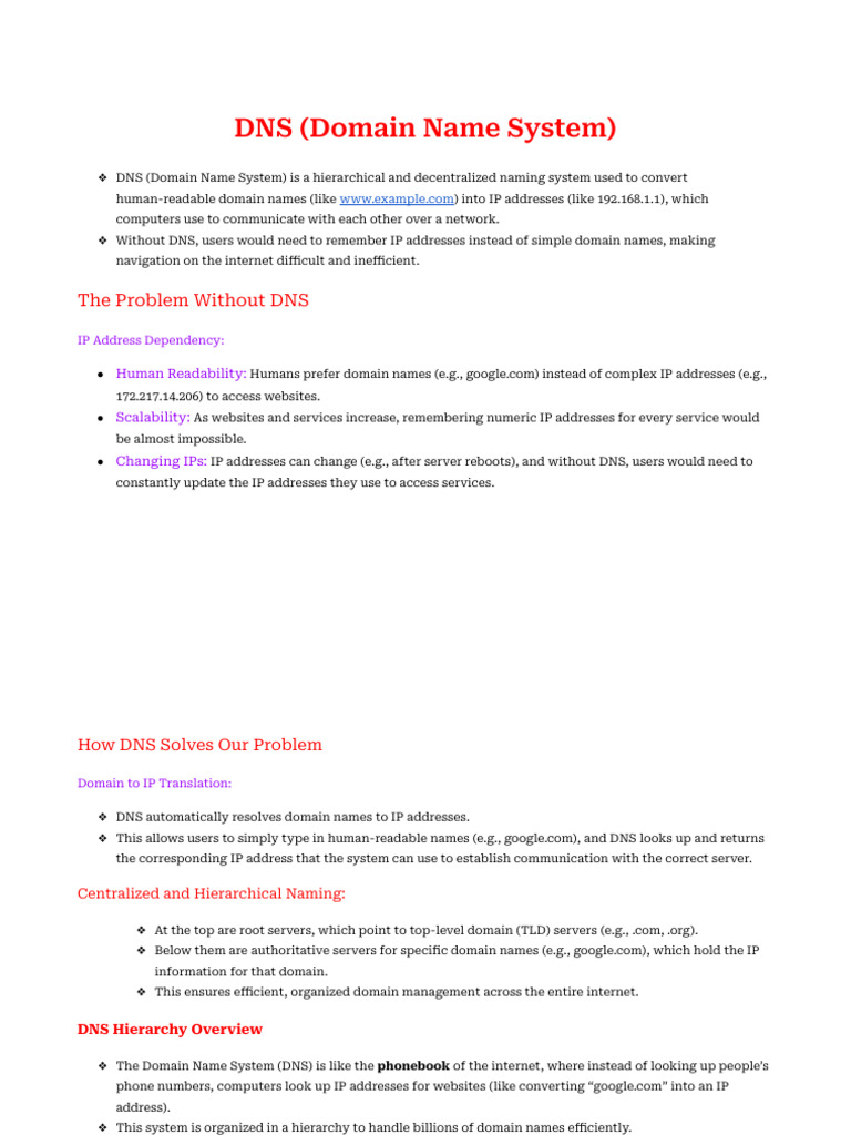 ● Human Readability: Humans prefer domain names (e.g., google.com) instead of complex IP addresses (e.g.,