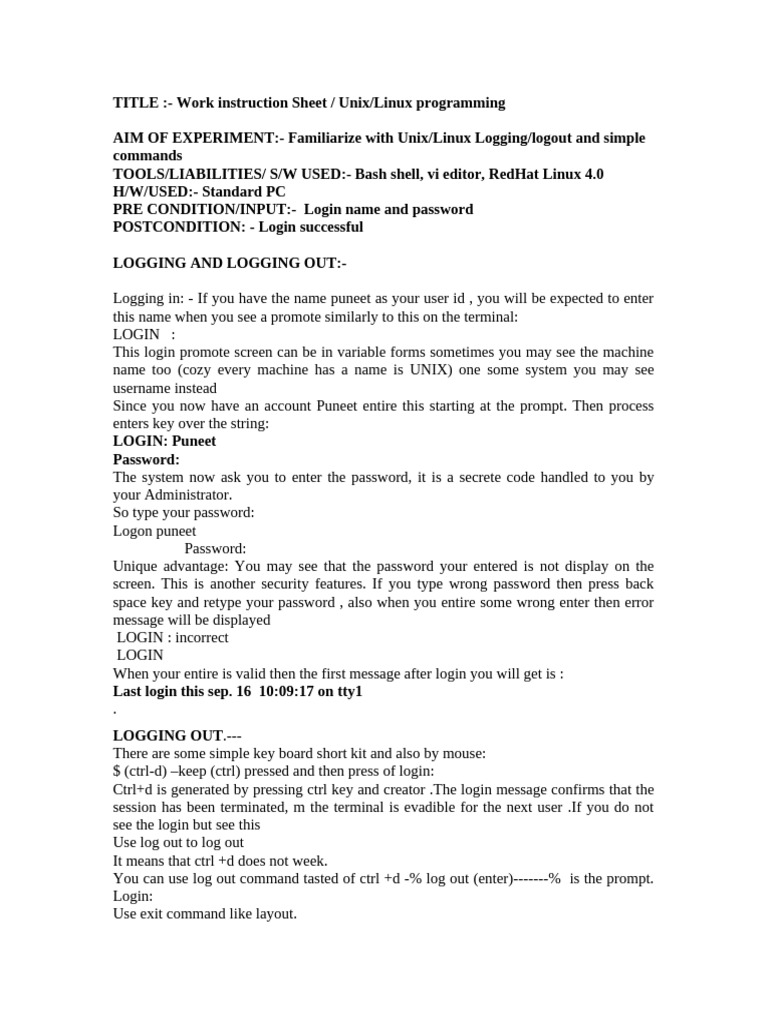 TITLE :- Work instruction Sheet / Unix/Linux programming