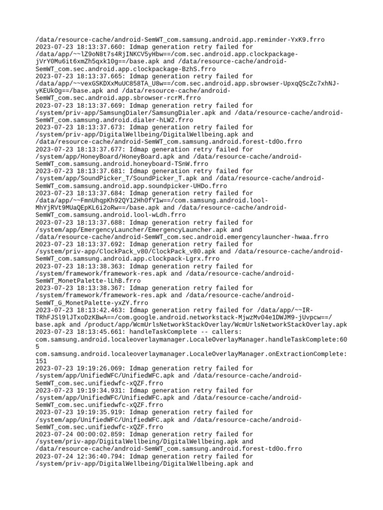 2023-07-23 18:13:42.463: Idmap generation retry failed for /data/app/~~IR-