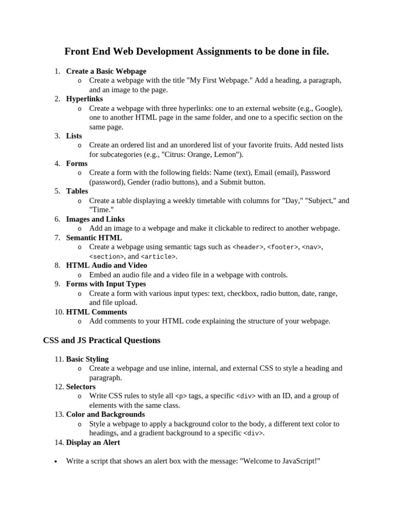 o Create a webpage with the title "My First Webpage." Add a heading, a paragraph,
