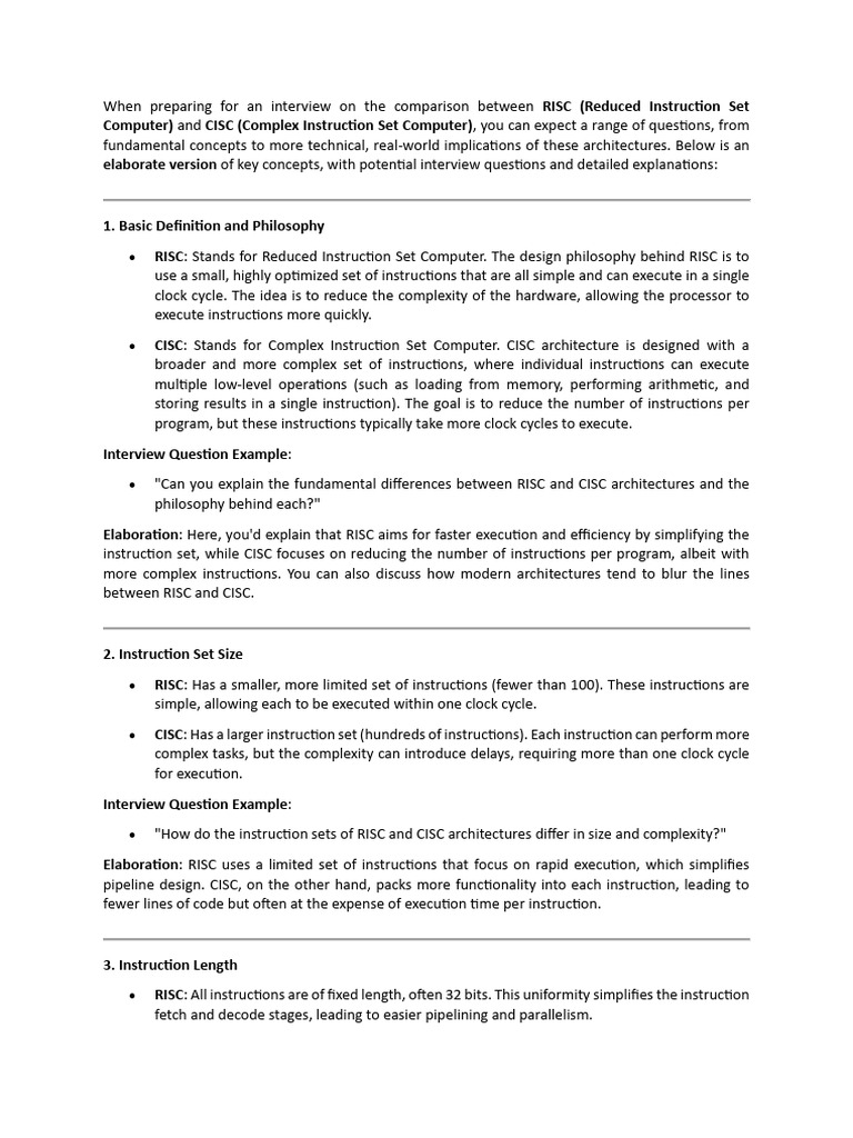 Computer) and CISC (Complex Instruction Set Computer), you can expect a range of questions, from