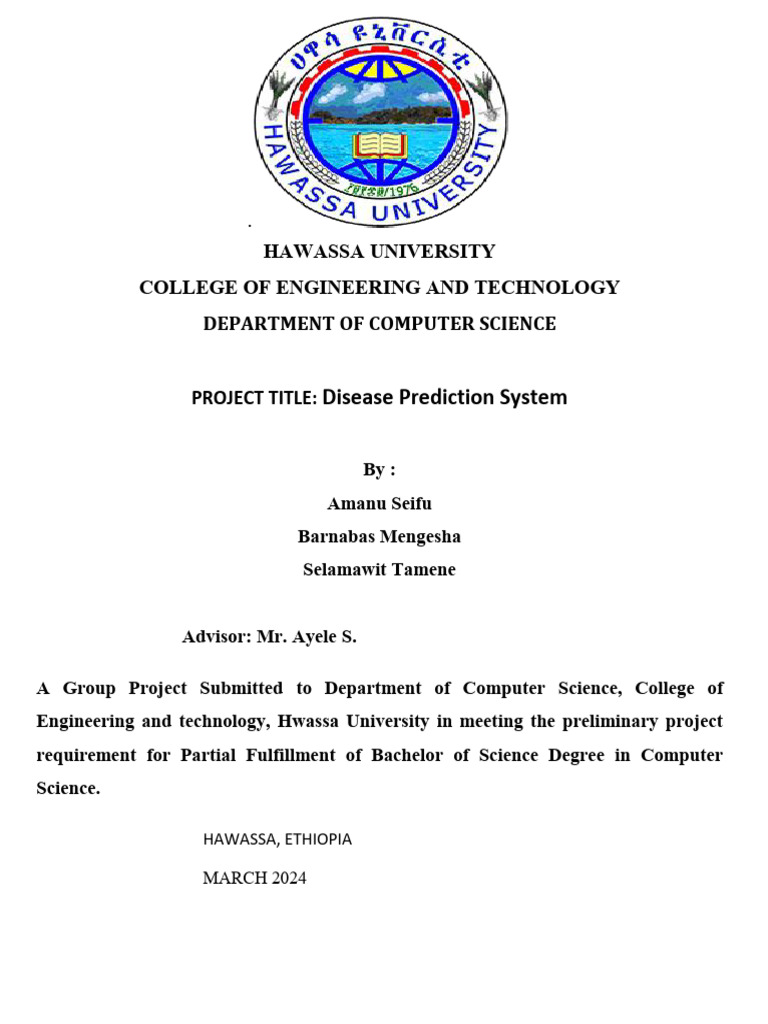 This Group Project entitled as “Disease Prediction System ” has been read and approved as meeting the