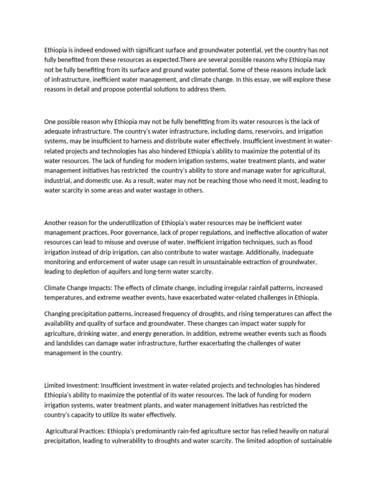 cooperation, Ethiopia can work towards realizing the full potential of its valuable water resources.