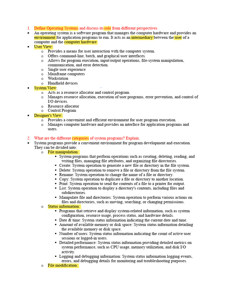 15. Explain operating system functions and services in detail. (Same as 3rd)