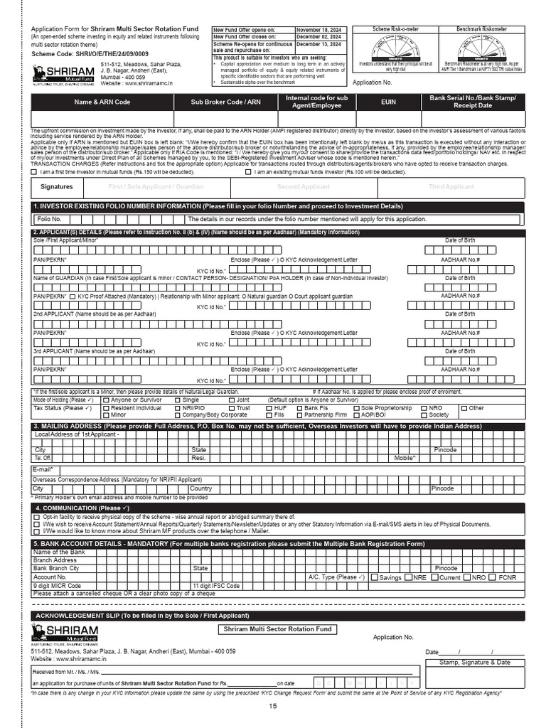 Application Form for Shriram Multi Sector Rotation Fund New Fund Offer opens on: November 18,