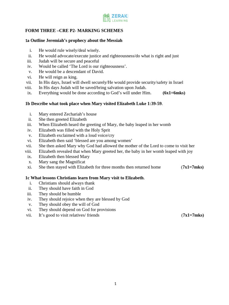 ix. Everything would be done according to God’s will under Him. (6x1=6mks)