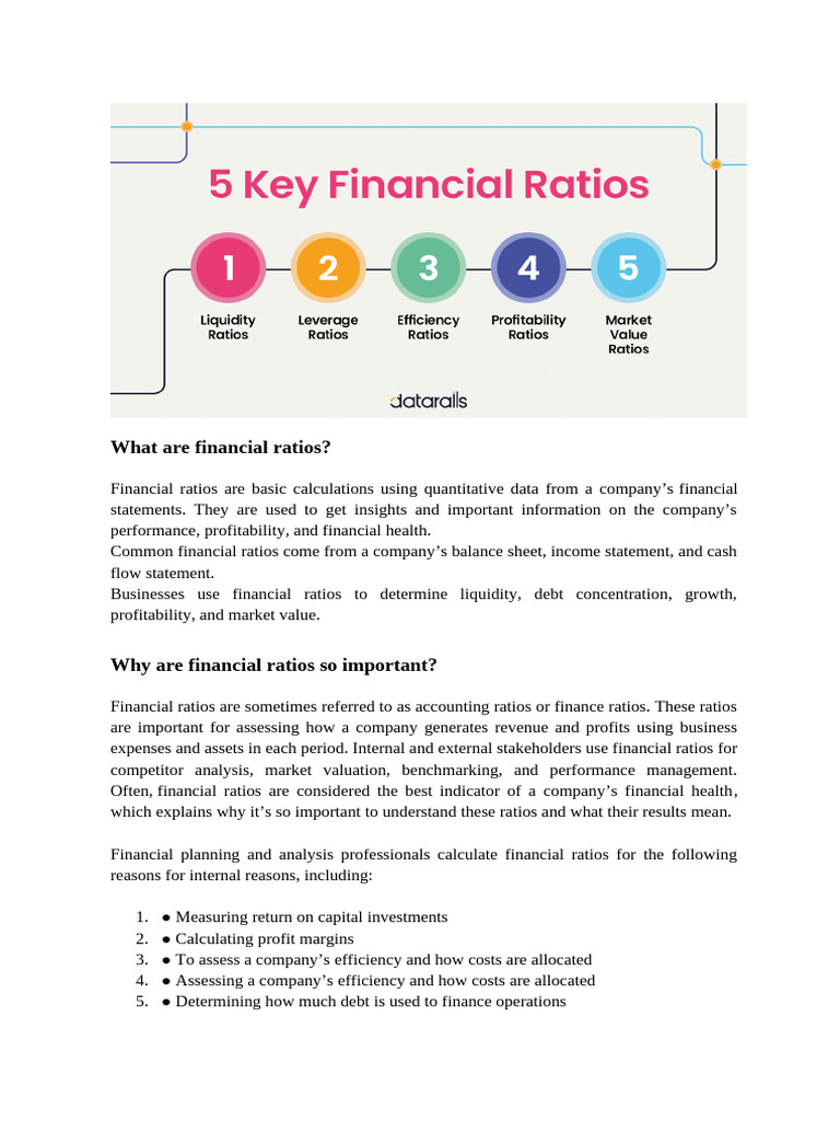 Financial ratios are basic calculations using quantitative data from a company’s financial