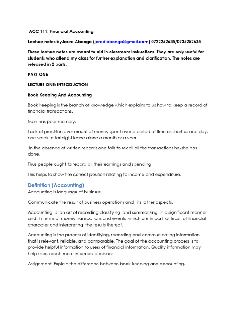 Book keeping is the branch of knowledge which explains to us how to keep a record of