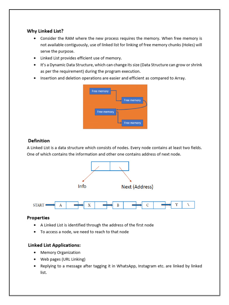 Linear Linked List: The diagram below shows linear Linked List where each node contains