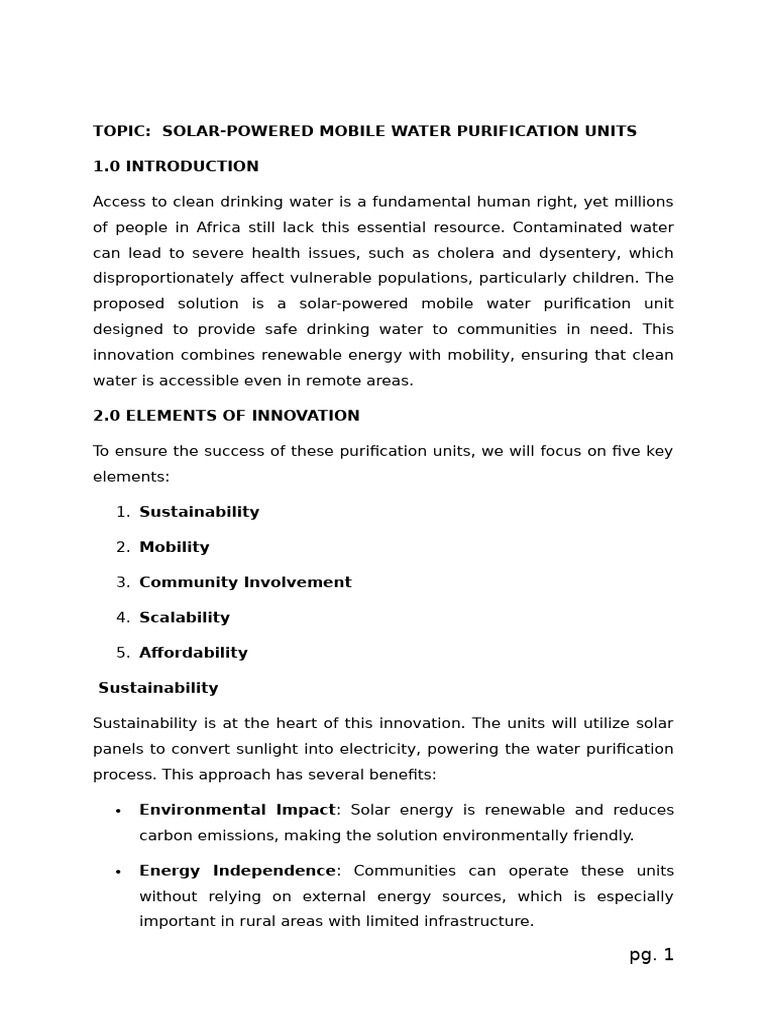 TOPIC: SOLAR-POWERED MOBILE WATER PURIFICATION UNITS