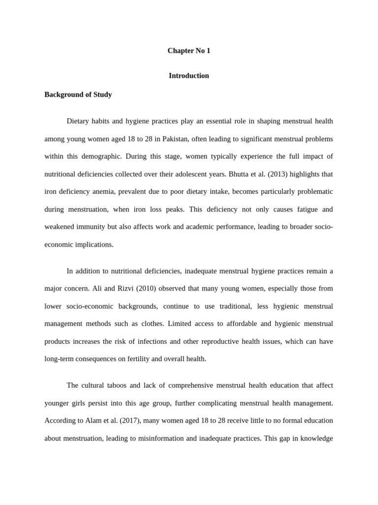 dysmenorrhea (Smith & Jones, 2020; Brown & Green, 2019). Moreover, menstrual health is a