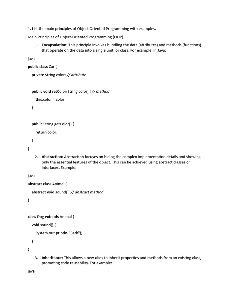 1. Encapsulation: This principle involves bundling the data (attributes) and methods (functions)