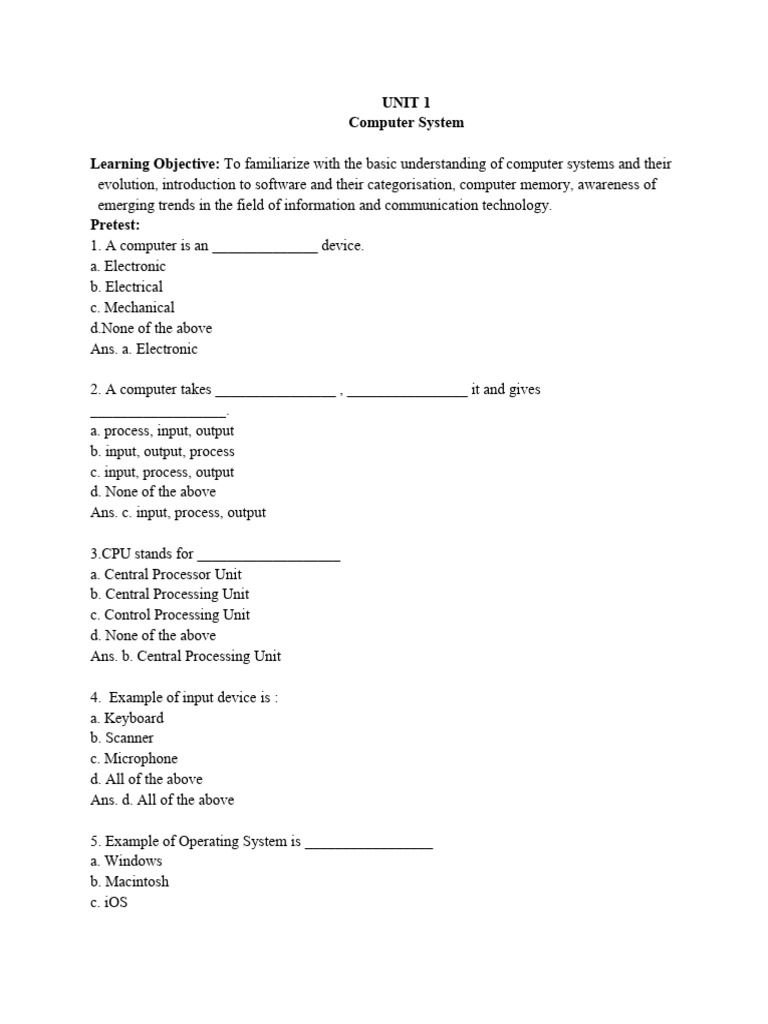 Learning Objective: To familiarize with the basic understanding of computer systems and their