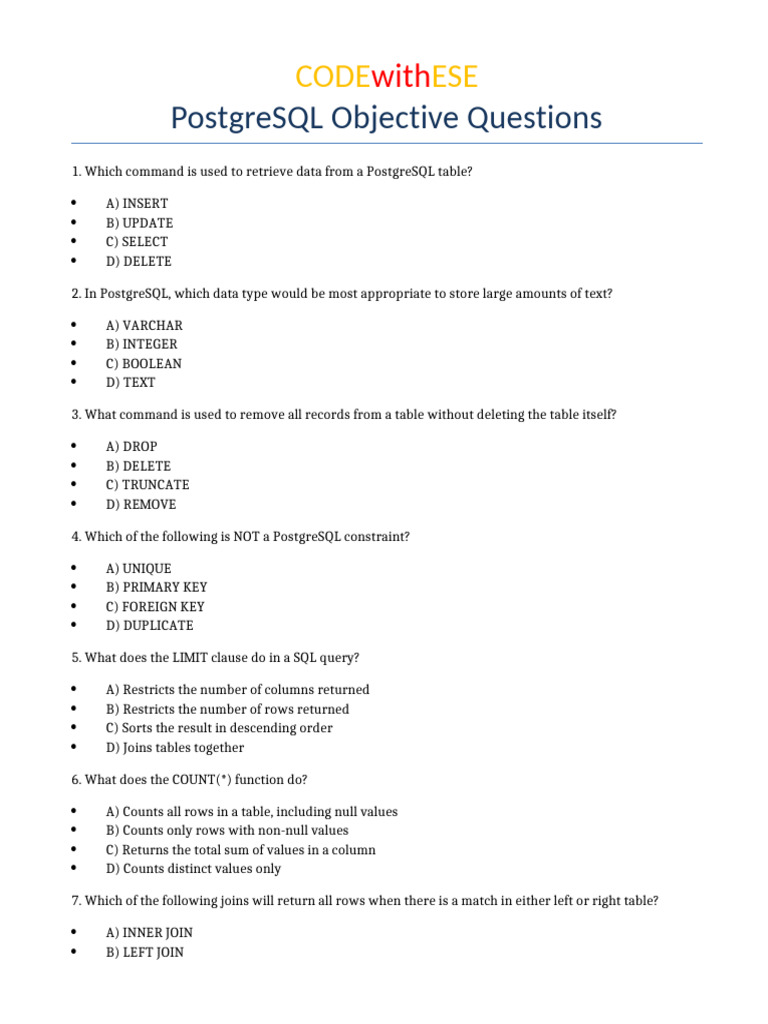1. Which command is used to retrieve data from a PostgreSQL table?
