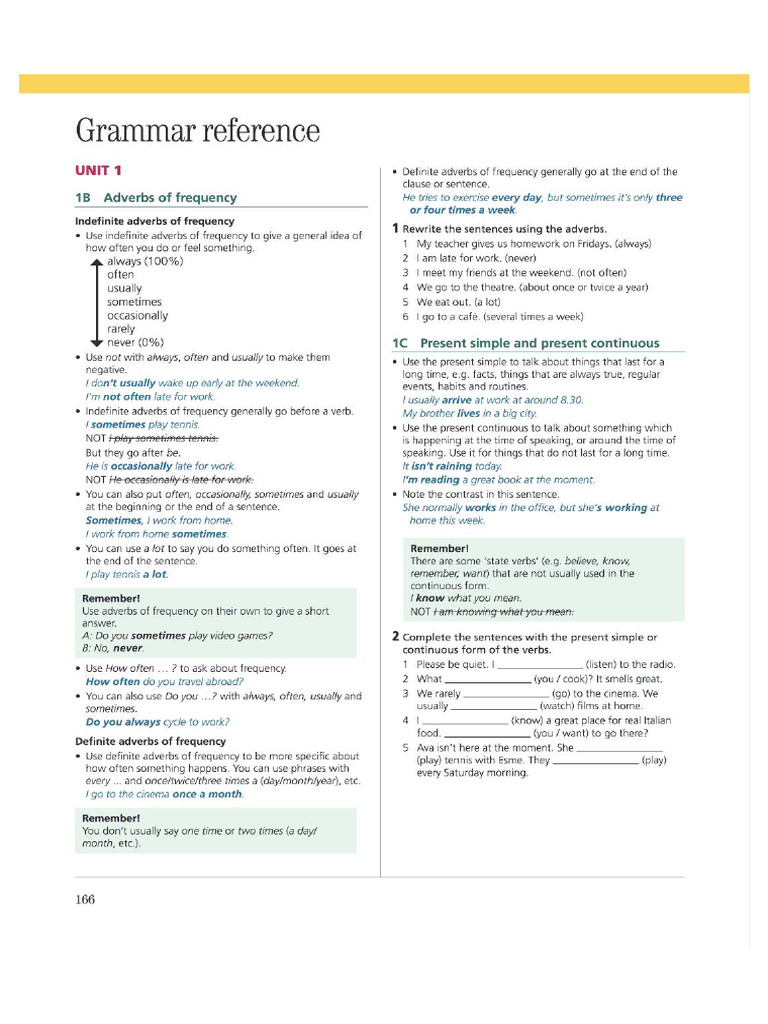The document provides a comprehensive grammar reference covering various topics such as adverbs of frequency, present simple and continuous, past simple, making questions, and conditionals. It explains the usage, formation, and examples of these grammatical structures, along with rules for forming questions and negative sentences. Additionally, it includes exercises for practice and reinforces key concepts to aid in understanding English grammar.