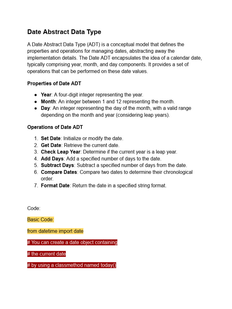 A Date Abstract Data Type (ADT) is a conceptual model that defines the