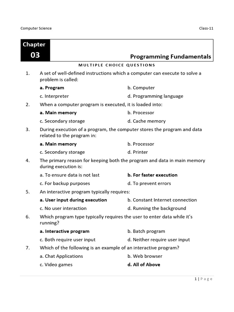 Ch-03: Programming Fundamentals - MCQs - PDF
