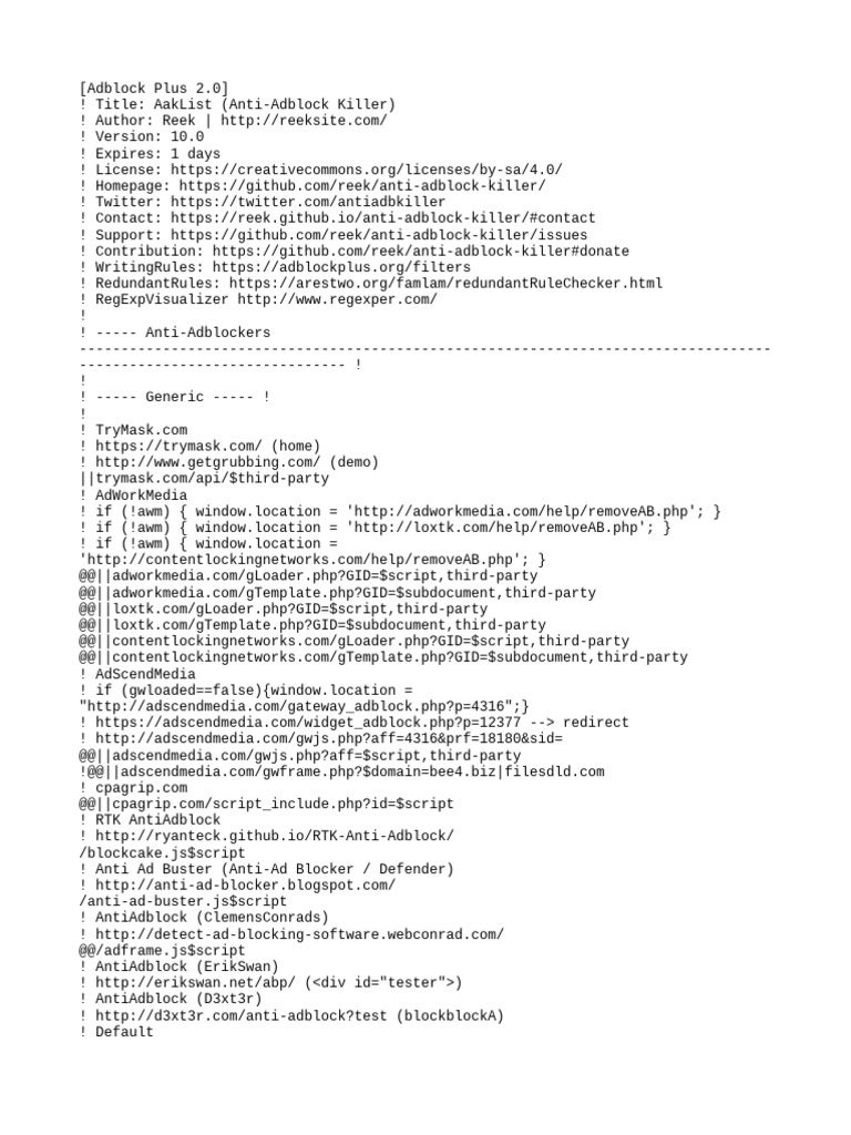 ! Title: AakList (Anti-Adblock Killer)