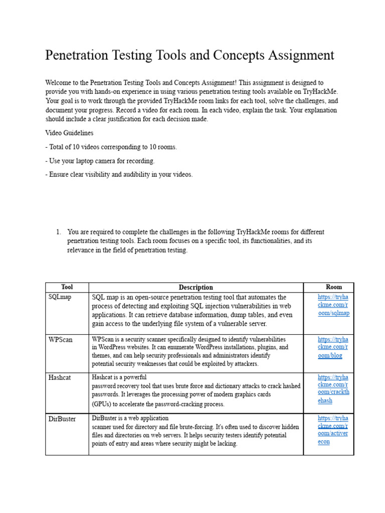 Welcome to the Penetration Testing Tools and Concepts Assignment! This assignment is designed to