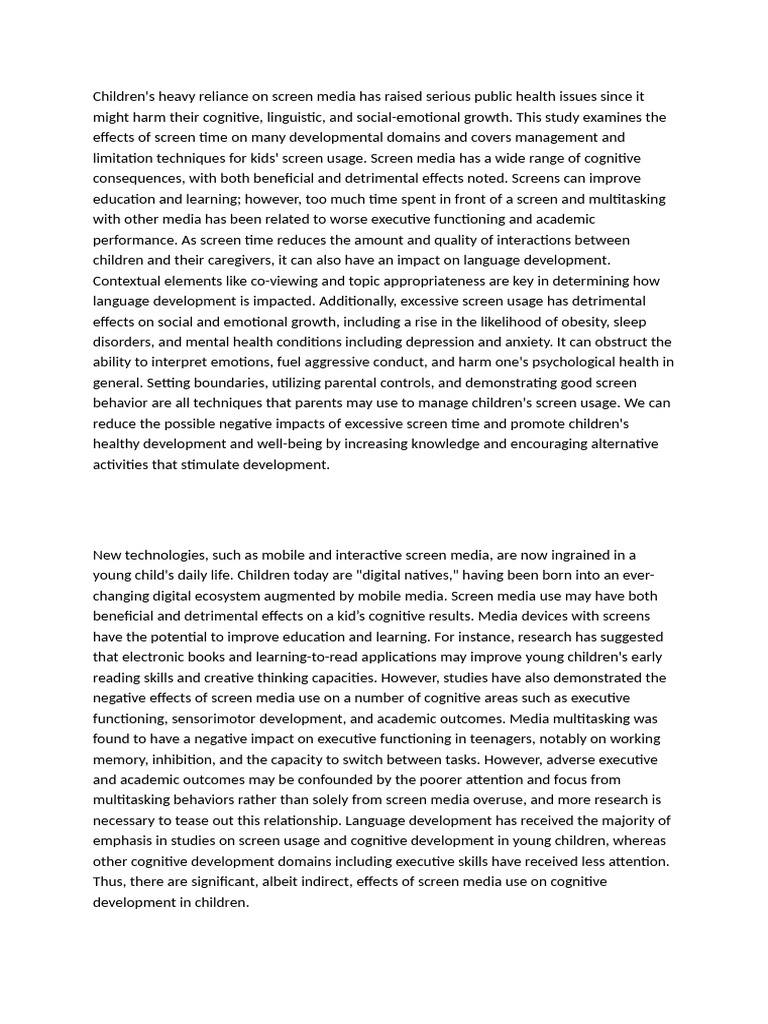 limitation techniques for kids' screen usage. Screen media has a wide range of cognitive