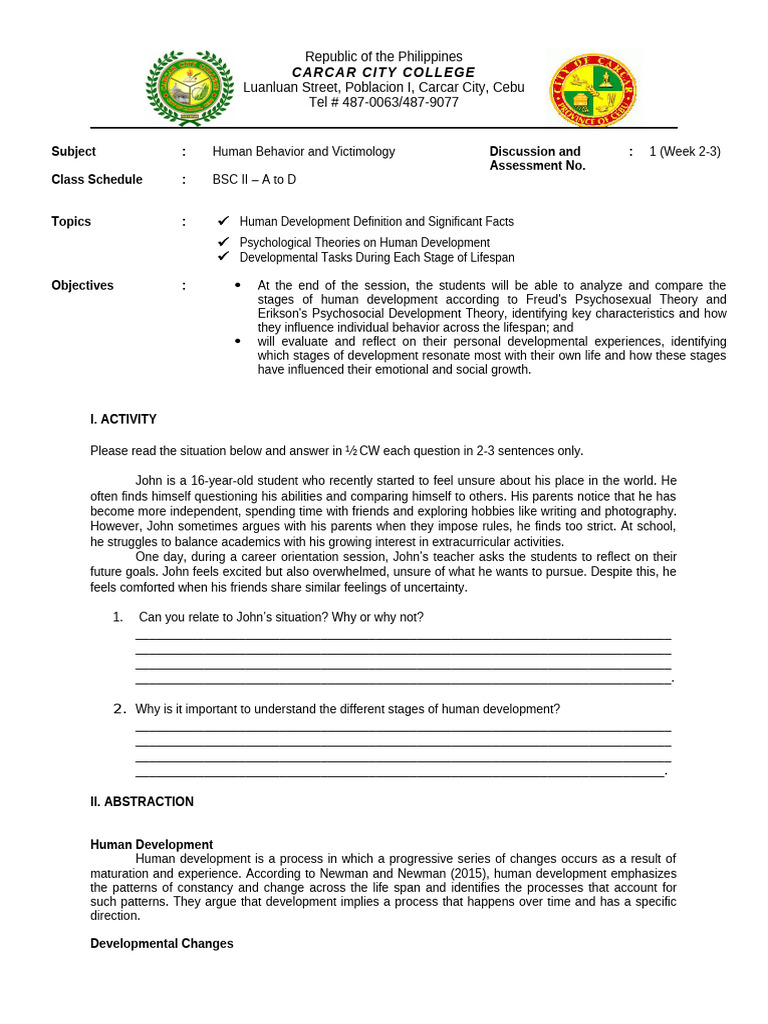 Subject : Human Behavior and Victimology Discussion and : 1 (Week 2-3)