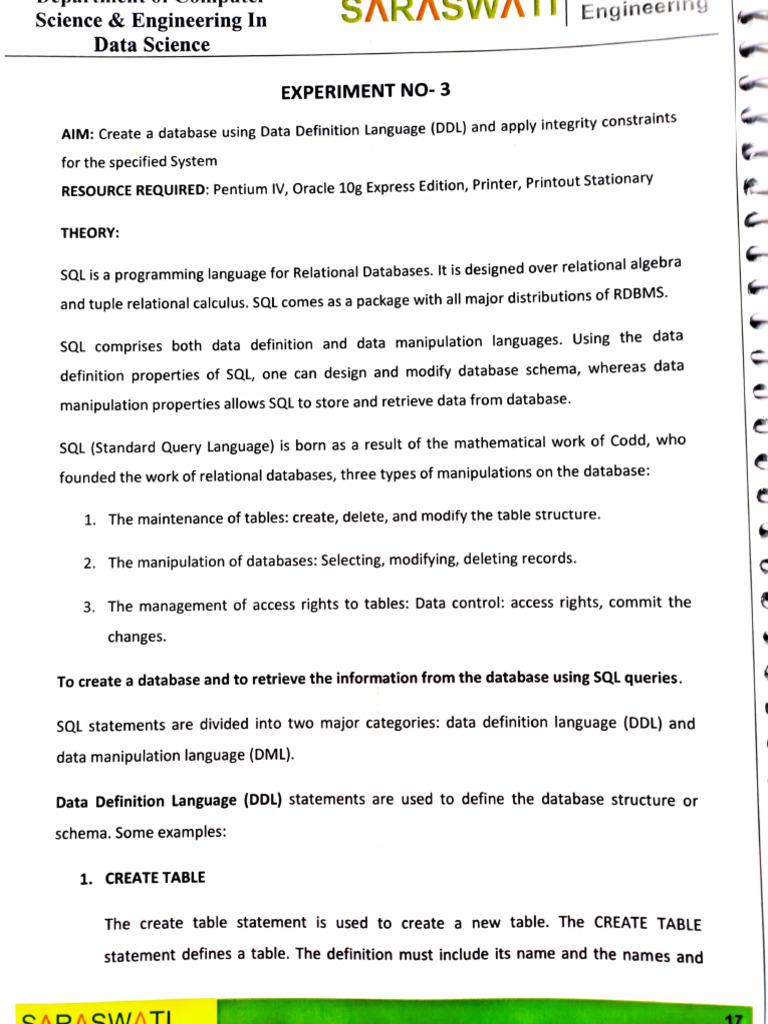 RESOURCE REQUIRED: Pentium IV, Oracle 10g Express Edition, Printer,