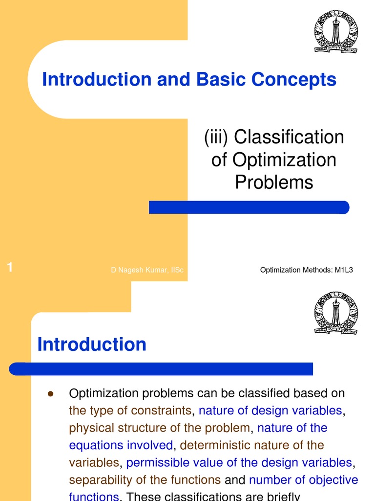 Introduction and Basic Concepts (iii) Classification of Optimization Problems