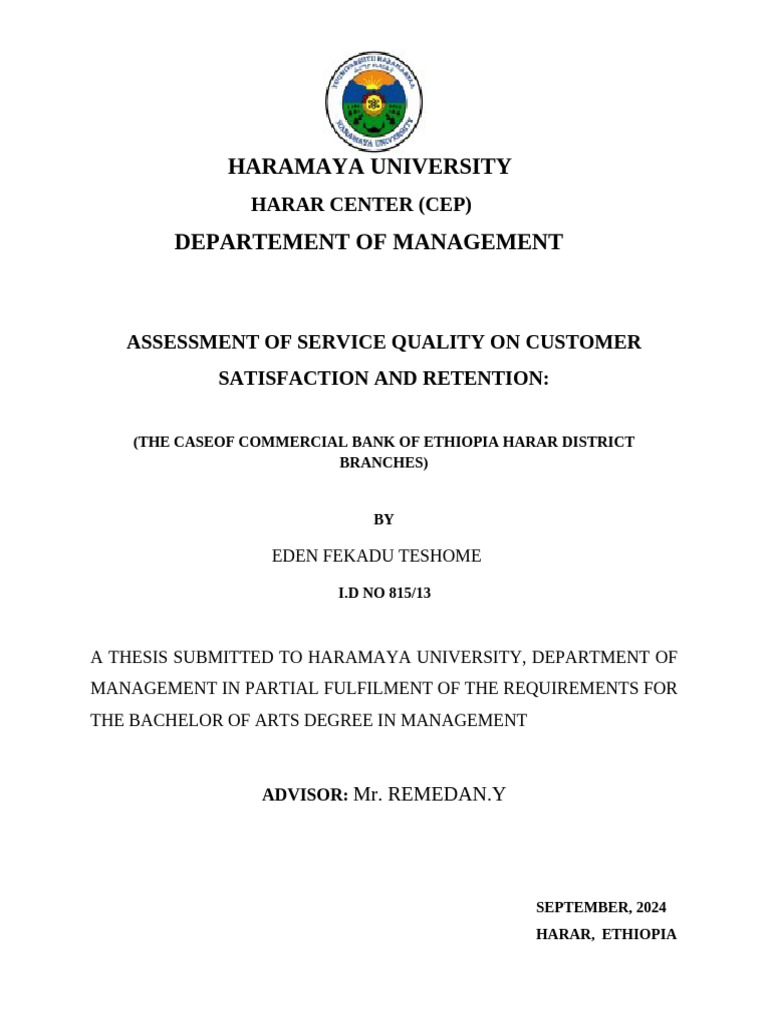 customer satisfaction and retention. The Commercial Bank of Ethiopia (CBE) Harar District