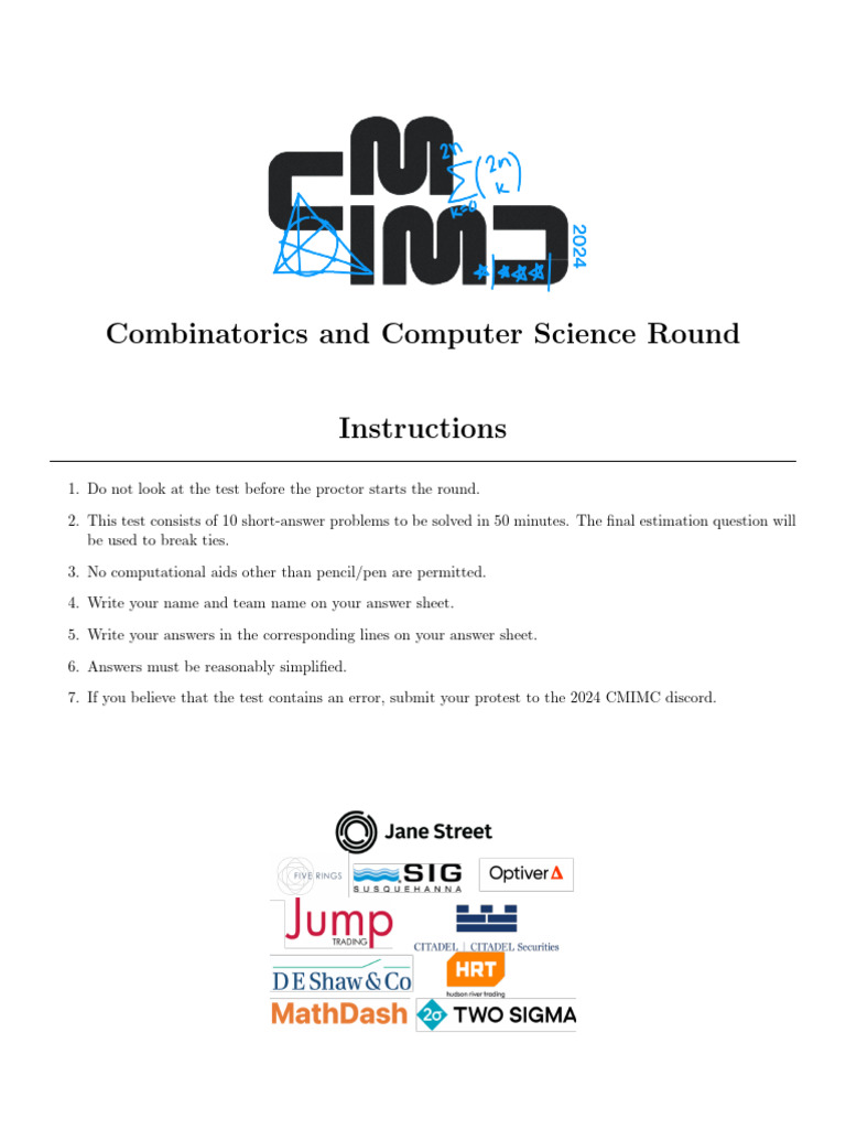 7. If you believe that the test contains an error, submit your protest to the 2024 CMIMC discord.