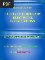 Portable generators are internal combustion engines used to generate electricity. They are useful when temporary or remote power is needed, and are commonly used during cleanup and recovery efforts following disasters. Major Causes of Injuries and Fatalities Shocks and electrocution to users from improper use. Shocks and electrocution to utility workers from improper connection to structures, such as residences, offices, shops and trailers. Safe Work Practices Maintain and operate portable generators in accordance with the manufacturers use and safety instructions. Never attach a portable generator directly to the electrical system of a structure (home, office or trailer) unless the generator has a properly installed open-transition transfer switch. Always plug electrical appliances and tools directly into the generator, using the appliance manufacturers supplied cords. Use heavy-duty extension cords that contain a grounding conductor (3-wire flexible cord and 3-pronged cord connectors). Proper grounding and bonding are a means to prevent shocks and electrocutions. Use ground-fault circuit interrupters (GFCIs) as per the manufacturers instructions. Do not connect a generator to a structure unless the generator has a properly installed transfer switch. Visually inspect the equipment before use; remove defective equipment from service; mark or tag it as unsafe for use. Grounding Requirements for Portable and Vehicle-mounted Generators Under the following conditions, OSHA directs (29 CFR 1926.404(f)(3)(i)) that the frame of a portable generator need not be grounded (connected to earth) and that the frame may serve as the ground (in place of the earth): The generator supplies only equipment mounted on the generator and/or cordand plug-connected equipment through receptacles mounted on the generator, 1926.404(f)(3)(i)(A), and The noncurrent-carrying metal parts of equipment (such as the fuel tank, the internal combustion engine, and the generators housing) are bonded to the generator frame, and the equipment grounding conductor terminals (of the power receptacles that are a part of [mounted on] the generator) are bonded to the generator frame, 1926.404(f)(3)(i)(B). Thus, rather than connect to a grounding electrode system, such as a driven ground rod, the generators frame replaces the grounding electrode. If these conditions do not exist, then a grounding electrode, such as a ground rod, is required. If the portable generator is providing electric power to a structure by connection via a transfer switch to a structure (home, office, shop, trailer, or similar) it must be connected to a grounding electrode system, such as a driven ground rod. The transfer switch must be approved for the use and installed in accordance with the manufacturers installation instructions by a qualified electrician.