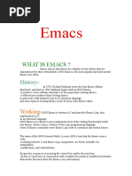 54. defvar syntax (defvar varname defaultvalue "documentation string") defvar is like setq, but offers some advantages like a description and the defaultvalue is set only if the varname is undefined. if the documentation string begins with a "*", the variable is user definable with the Mxset-variable command 55. Window Positioning functions 1. (point) This is the number of characters into the buffer we are. (point) returns the value. 2. (window-start) returns the position of the character in the upper left corner. 3. (goto-char n) takes cursor to the nth character in the buffer 4. (set-window-start nil n) ;;sets the window start of the current buffer to n. 56. Useful, but hard to remember misc key sequences and commands: