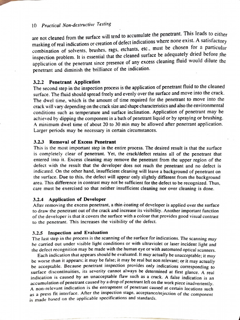 A typical penetrant testing involves use of a variety the fluids involved in the penetrant