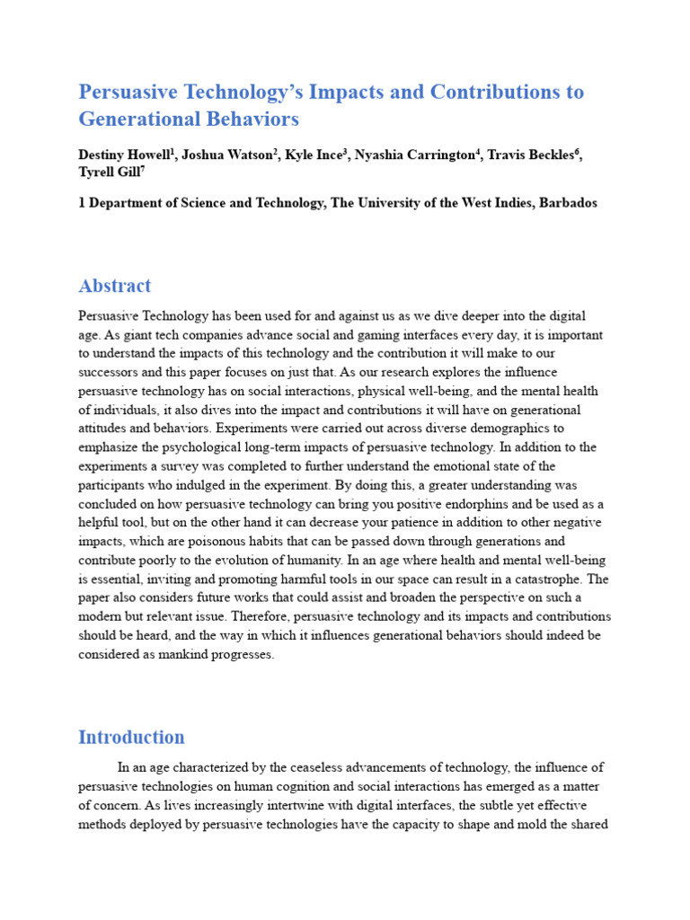 The pervasive impact of persuasive technology on generational behaviors has garnered