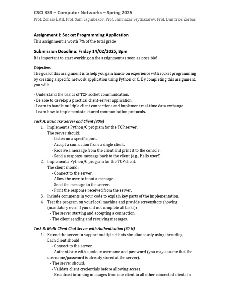 Task B: Multi-Client Chat Server with Authentication (70 %)