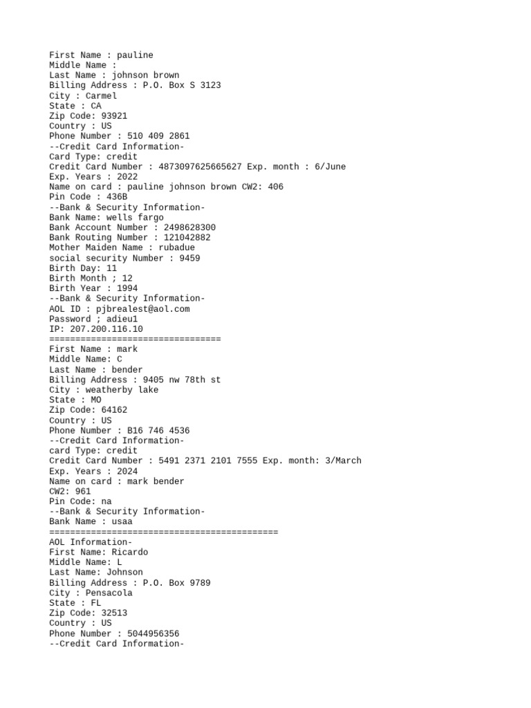 Bank Routing Number : 222371863 Mother Maiden Name : cote