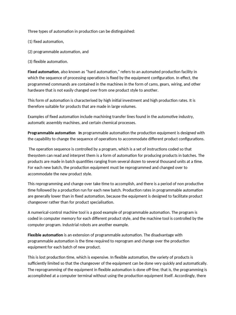 Flexible automation is an extension of programmable automation. The disadvantage with