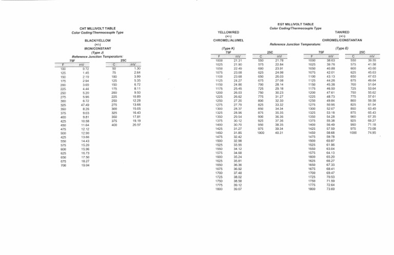 CHT MILLIVOLT TABLE Color Coding/Thermocouple Type