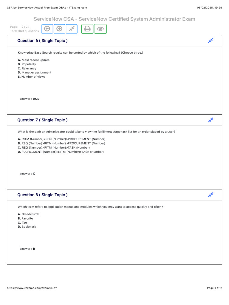 CSA by ServiceNow Actual Free Exam Q&As - ITExams.com 05/02/2025, 19:29
